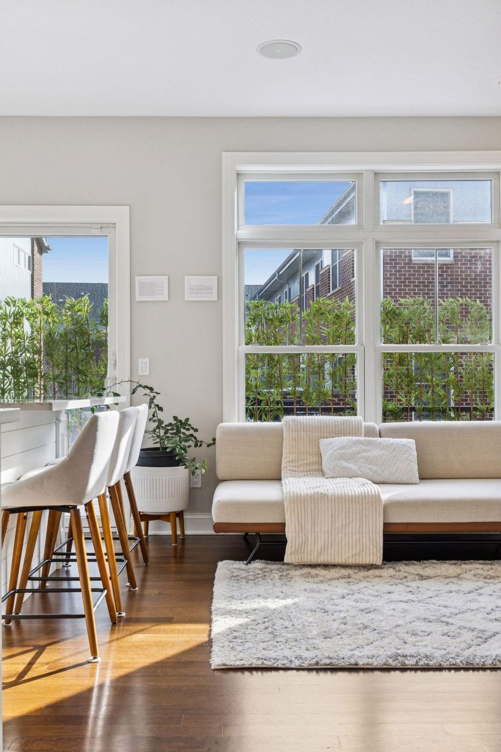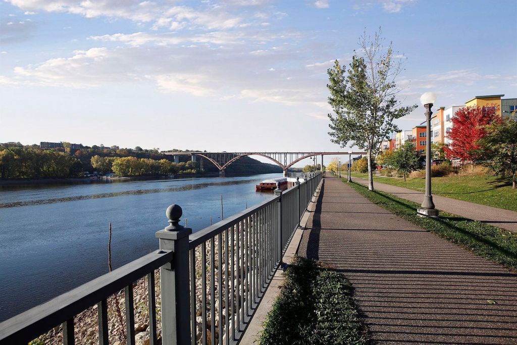 Beautifully remodeled by Michael Paul Design + Build, this stunning townhome showcases exceptional craftsmanship, thoughtful design, and high-end finishes throughout. From the moment you step inside, you’ll be captivated by the bright and sunny living spaces, oversized windows, and ever-changing four-season views that create a warm and inviting atmosphere year-round. Just off the foyer, a charming sitting room welcomes you with stylish shiplap walls, a striking stone-surround gas fireplace, and a convenient half bath located off the attached two-car garage entrance. This flexible space is ideal for relaxing, working from home, or greeting guests in comfort and style. The second level is an entertainer’s dream, where rift-sawn white oak hardwood floors flow seamlessly through the open-concept living and dining areas, and access to a balcony deck enhances indoor-outdoor living. The gourmet kitchen is a true showpiece, boasting Restoration Hardware fixtures, London Sky quartz countertops, professional-grade appliances, center island, and adjacent hearth room with an exquisite gas fireplace surrounded by white built-ins and shiplap- all perfect for gatherings and casual dining. An additional half bath on this level and kitchen access to a new balcony deck add everyday convenience. Upstairs, retreat to two spacious bedrooms, each offering en suite bathrooms and walk-in closets, including the impressive Owner’s suite that stands out with soaring 13-foot ceilings, dramatic floor-to-ceiling windows, and a private balcony deck that captures gorgeous sunset views. Ideally located, this townhome offers unbeatable walkability- just steps to Caribou Coffee, Anytime Fitness, and City House, with walking and biking paths along the Mississippi River right outside your door. And with quick access to major highways and less than one mile to downtown St. Paul, you’re moments from endless dining, entertainment, and cultural attractions, including the Grand Casino Arena for year-round events.