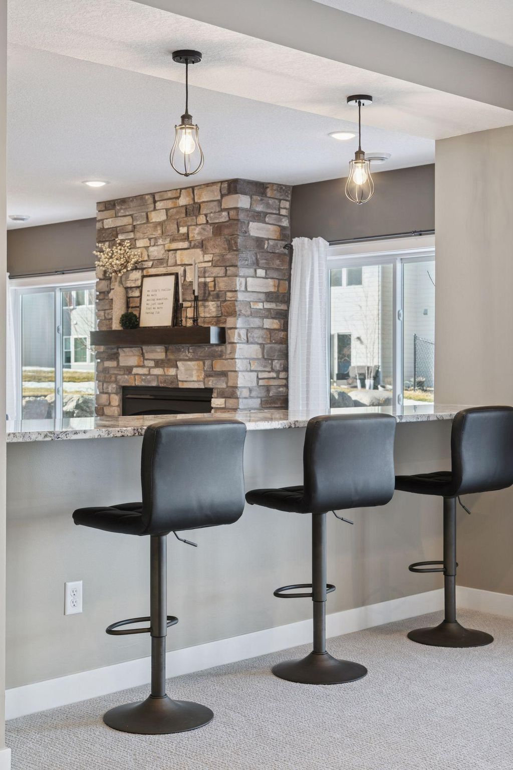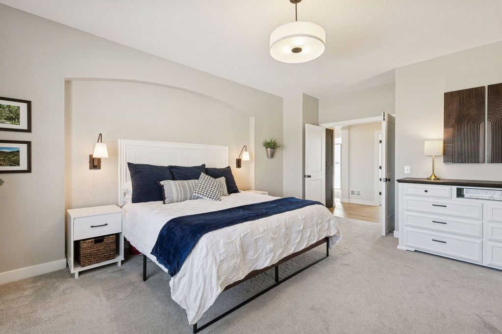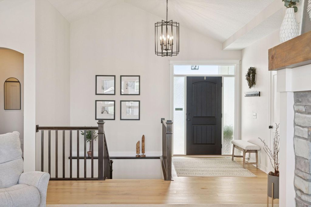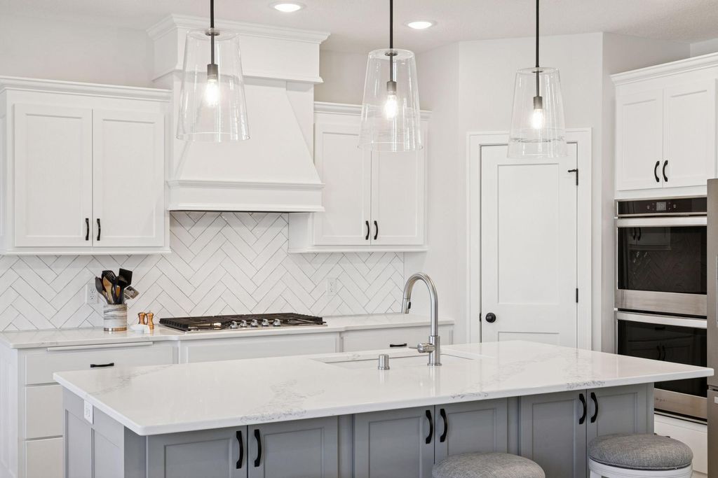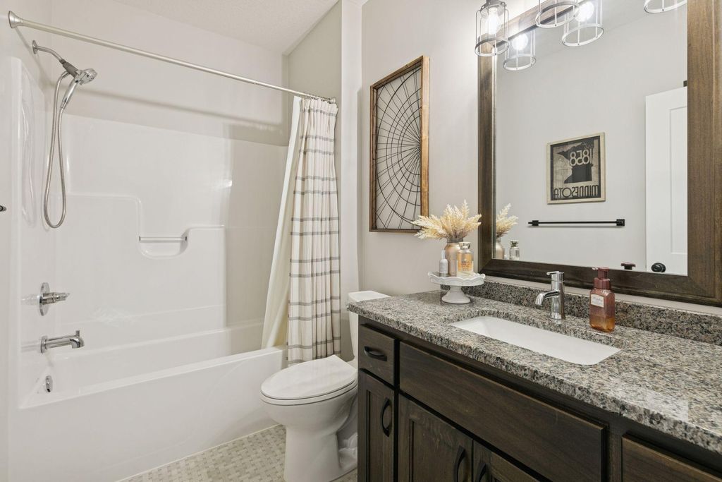 Experience refined main-level living in this beautifully designed home set on a private lot at the end of a low-traffic street, bordered by peaceful country views. From the moment you step inside, you’ll appreciate the thoughtful layout, bright open spaces, and modern finishes designed for both entertaining and everyday comfort. Large windows on both levels flood the home with natural light, highlighting the hand-scraped birch hardwood floors on the main level and gleaming granite countertops throughout. In the heart of the home, the vaulted great room is a stunning focal point, featuring a stone and shiplap surround gas fireplace that creates warmth and character next to the gourmet kitchen, where a generous center island, walk-in pantry, double wall ovens, and gas cooktop can be checked off your list. Just beyond, the spacious informal dining area includes a built-in buffet and easy access to the maintenance-free deck with a drink rail and staircase—perfect for grilling, relaxing, or hosting while enjoying serene backyard views. Also be pleased to find three bedrooms and two full baths on the main level, including the large Owner’s Suite with a walk-in closet and private bath retreat, not to mention a well-appointed laundry room and mudroom just off the insulated four-car attached garage. For the entertainer, the walkout lower level is a dream come true with its stunning family room featuring a second stone surround gas fireplace, wet bar/kitchenette with open dining space, and a game area, where you can step outside to the impressive stamped concrete patio. With two additional bedrooms and a full bath, this level is also ideal for multi-generational living and provides options for an office, exercise or hobby room. Located just 1-2 miles from Cub Foods, Heritage Library, and vibrant downtown Lakeville with its restaurants and coffee shops, this home also offers convenient access to schools and I-35 in under 10 minutes. Set in a welcoming, active neighborhood, this exceptional property blends comfort, style, and location into one remarkable opportunity.